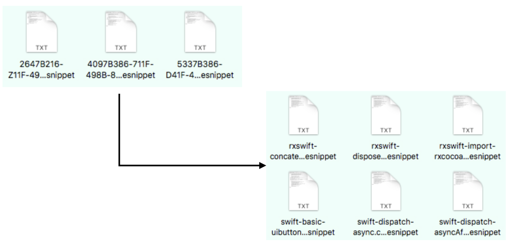 Finder에서 아래 경로를 이동하면 개인이 커스텀한 Snippets을 볼 수 있습니다. 이름이 랜덤으로 알아볼 수 없게 지정되있는데 이 Snippets들을 이름을 지정해주고 따로 백업해 두면 다른 환경을 구성할때 쉽게 개인 환경을 만들 수 있습니다.