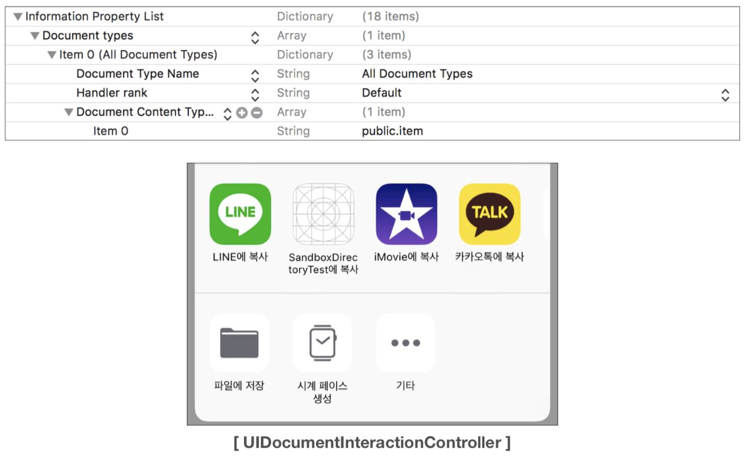 - LSSupportsOpeningDocumentsInPlace키의 값이 NO일때 iCloud드라이브 관련 / Files앱 / DocumentsPicker등에서 공유되는 파일들이 저장되는 디렉토리