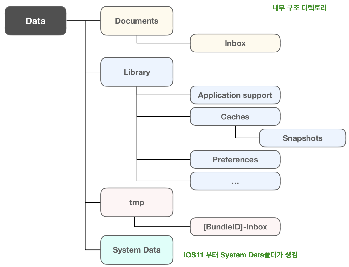 - 기본 디렉토리 - Document, Library, tmp, SystemData