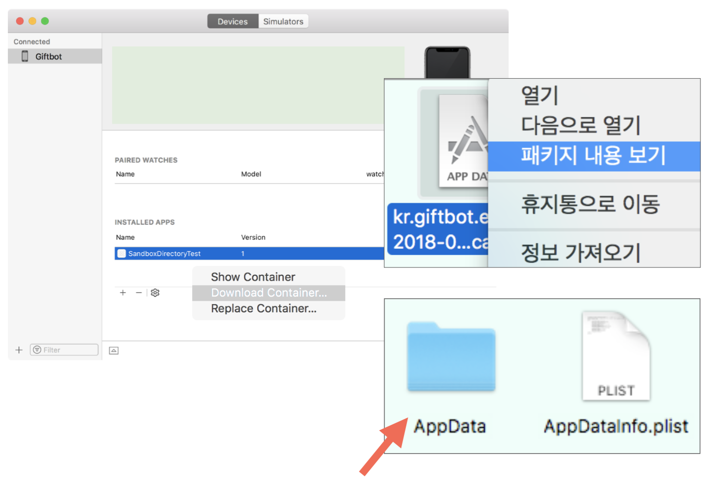위 그림이 App의 Sandbox 디렉토리를 보여주는 그림입니다.