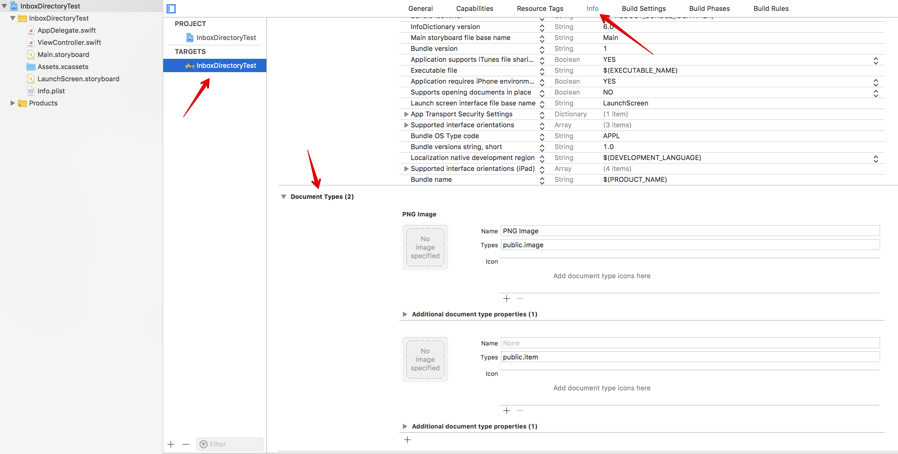 밑의 이미지처럼 InboxDirectory프로젝트를 하나 더 만들어서 Document Types를 지정해 줬습니다.