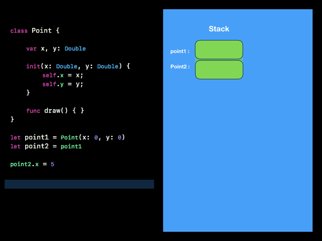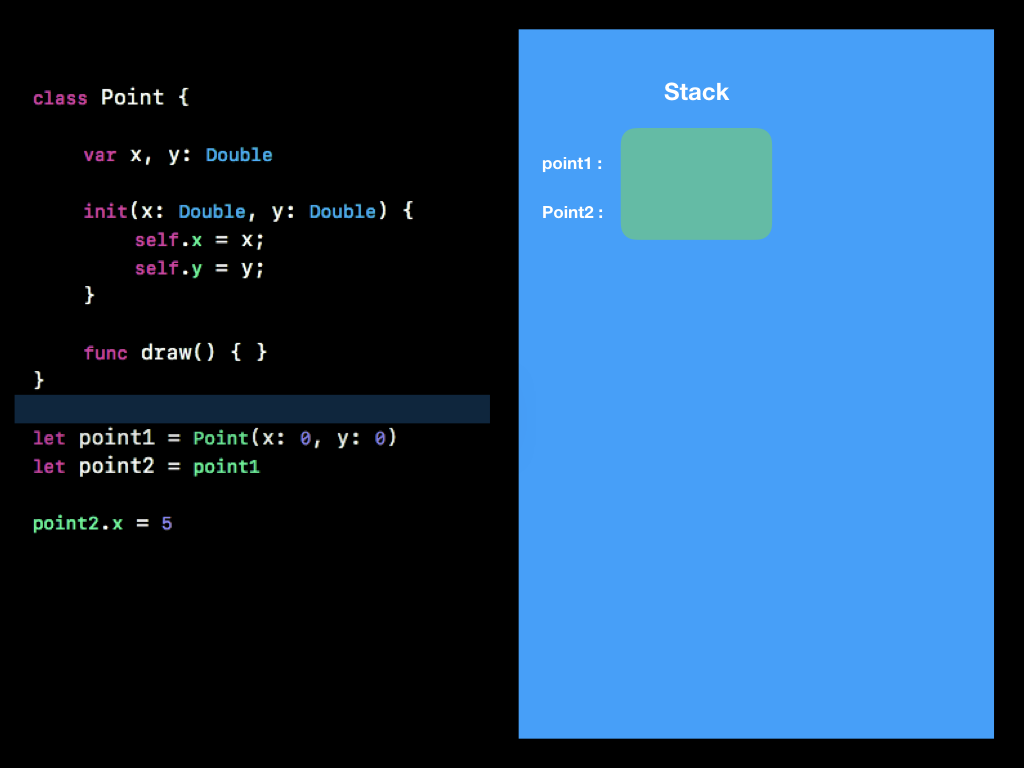 ⇧ point2는 point1의 주소를 가리키고있으므로 데이터는 공유된다.