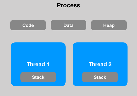 스레드란 프로세스가 할당받은 자원을 이용하는 실행의 단위입니다. 즉, 프로세스 내에서 동작되는 여러 실행의 흐름입니다. 기본적으로 하나의 프로세스가 생성되면 하나의 스레드가 같이 생성되는데 이를 메인스레드라고 부릅니다. 스레드를 추가로 생성하지 않는한 모든 프로그램 코드는 메인스레드에서 실행됩니다.