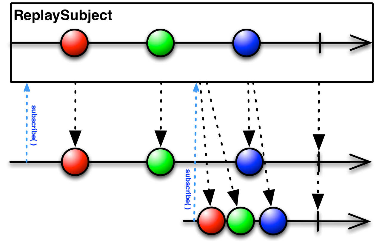 위의 마블을 보시면 PublishSubject와 달리 항상 직전의 값부터 구독하시는걸 볼 수 있습니다.