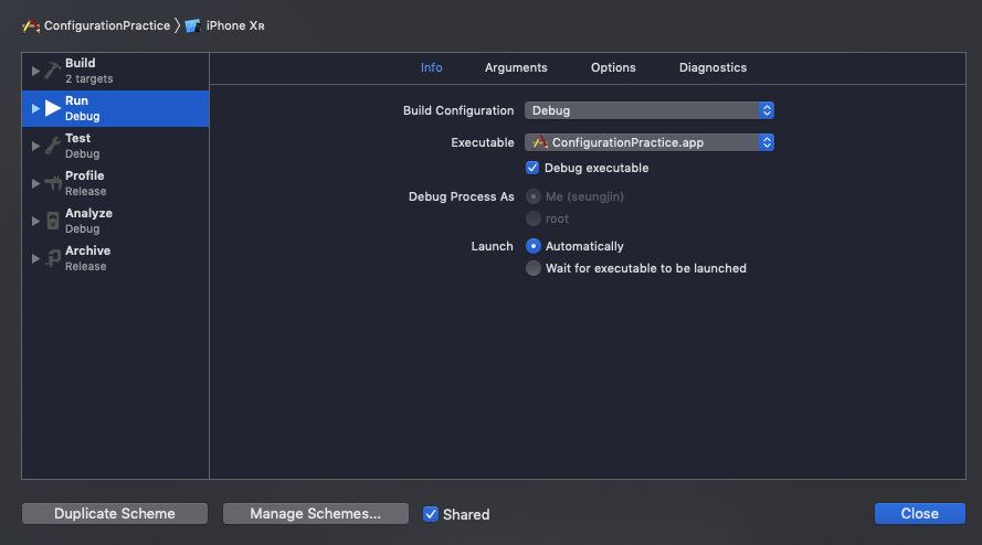 즉, 어떤 스키마를 들어가서 앱을 실행하더라도 Debug로 실행될 것이다.