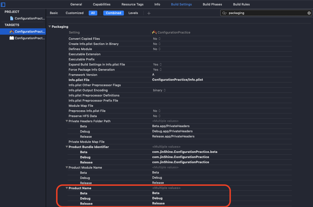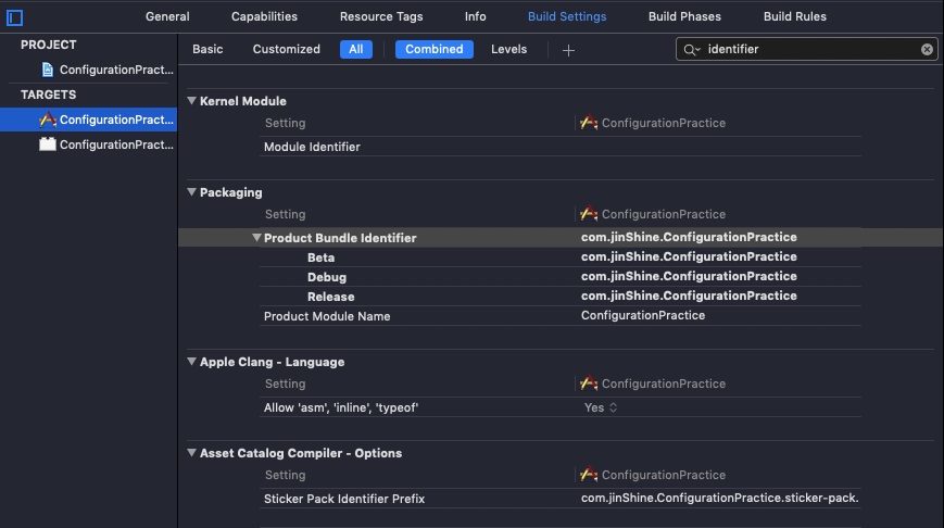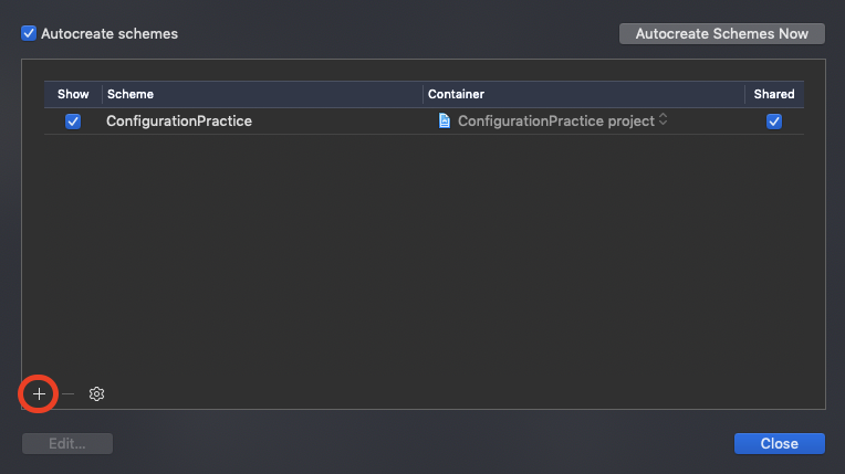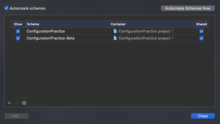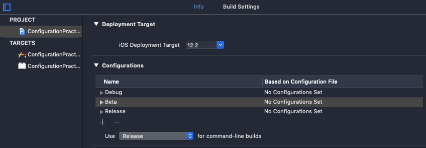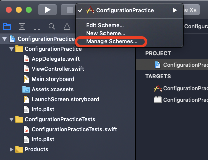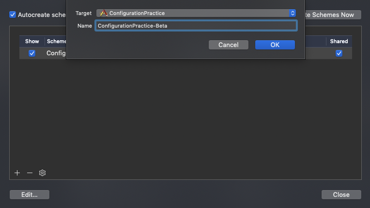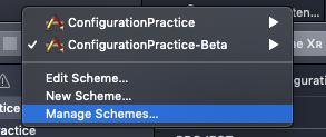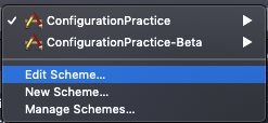 ConfigurationPractice-Beta로 이동후 → Edit Scheme → Build Configuration에 이름(.beta)을 바꾸어 놓으면
