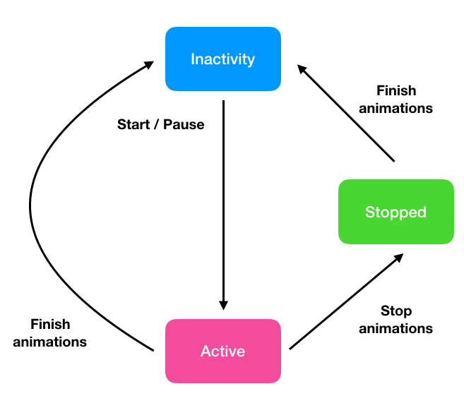 - finishAnimation이 호출되면 completion handler가 호출되고, Inactive상태로 전환되게 됩니다.
