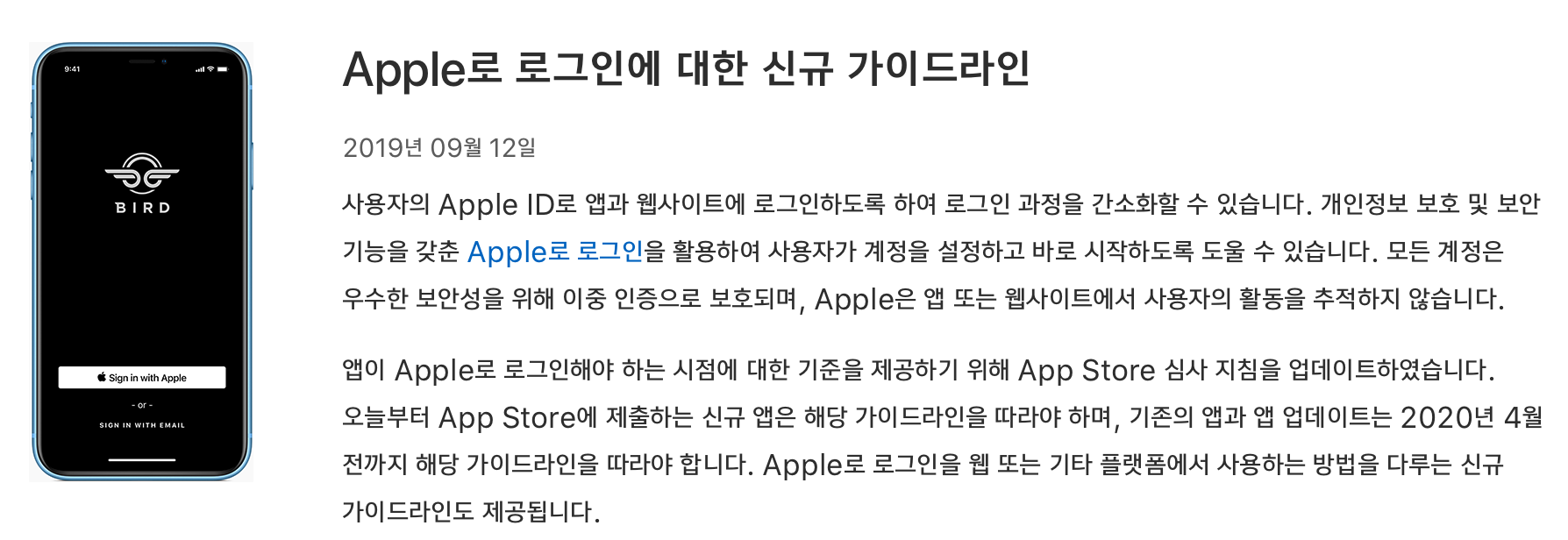 Sign in with Apple은 iOS 13이상 부터 사용가능한 새로운 인증 방법입니다.