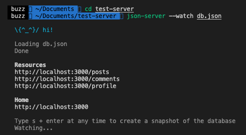다음과 같이 localhost의 3000번 포트로 JSON 서버가 실행된것을 볼 수 있습니다.🎉