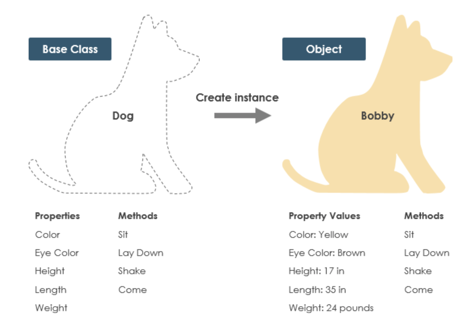 boddy라는 강아지를 객체화시켜서 color는 white강아지이며 앉기를 할 수있는 강아지를 객체화 시킨것이라고 생각하면 되고, tori라는 강아지는 브라운색의 눕기를 할줄 아는 강아지입니다.