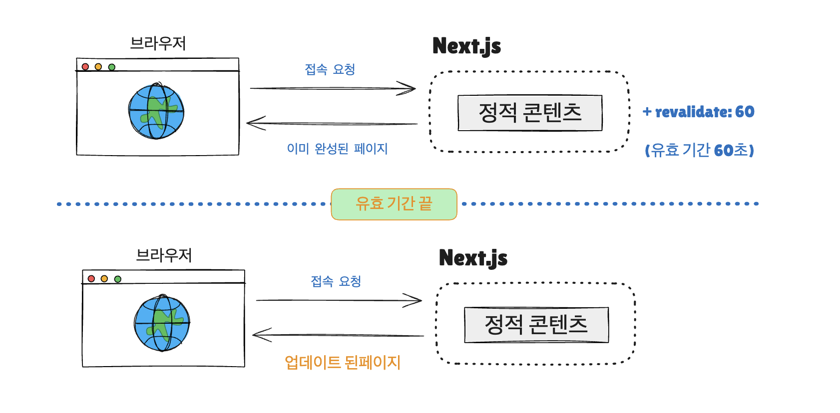 유효기간이 아니라 사용자의 행동에 따라 데이터가 업데이트 되는 페이지를 만들고 싶을때 사용하는 방법